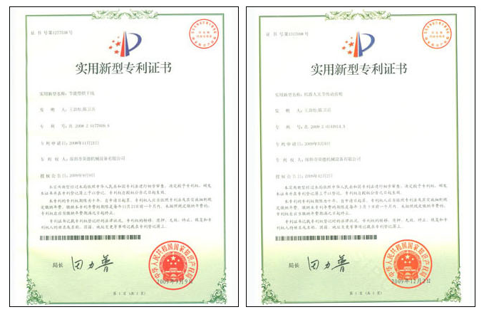 榮德機器人一直致力于自動噴涂行業的發展,20年來專注于自動噴涂設備的研發和生產,在行業內獨樹一幟,不斷開發新的產品,引領噴涂行業自動化升級。榮德每年投入銷售額的6%以上作為研發費用,目前為止,獲得20多項國家專利,以及各類獎項。下面為榮德相關專利的簡單介紹。