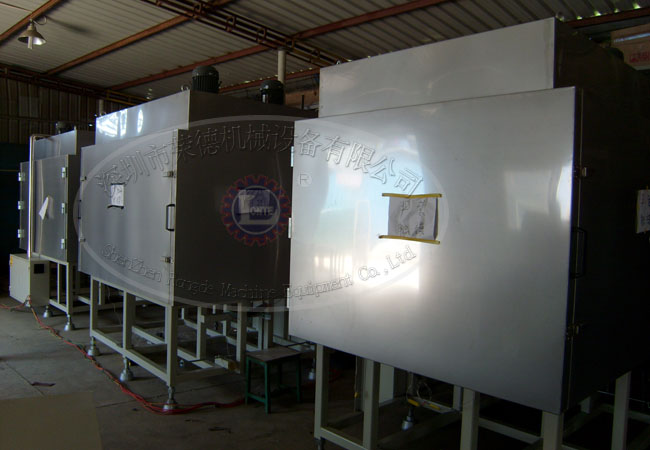 紫外光固化設備由光源、反射板、燈具、電源裝置、冷卻裝置、傳感器、工件輸送裝置、排氣換氣裝置、室體壁板及防紫外線照射擋簾等組成。中型工件的紫外光UV固化室一般為非標設備,根據產量、工藝要求、工件外形大小、輸送方式及速度等具體情況設計制造,小型工件的紫外光固化設備市場上有部分規格產品可供選購。